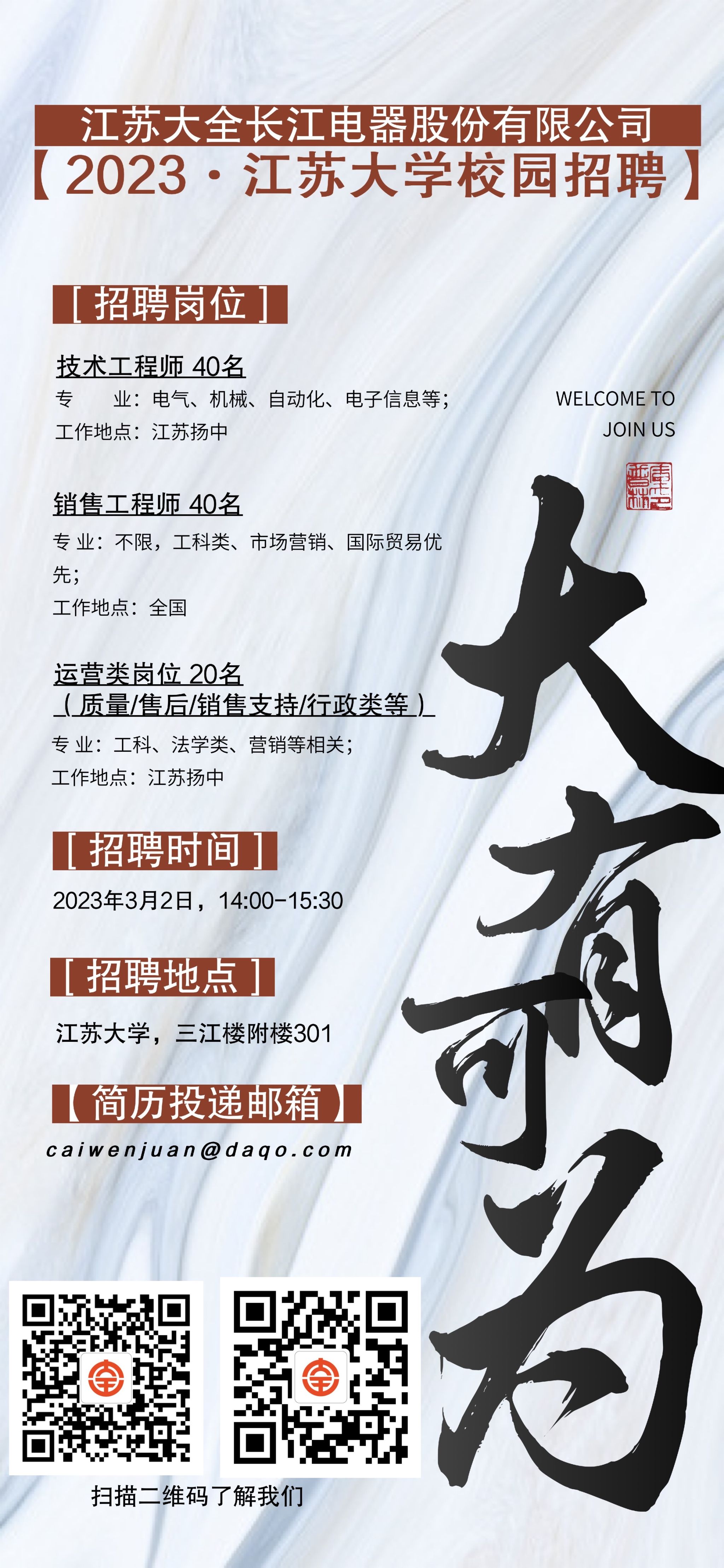 江苏大全长江电器股份有限公司2023校园招聘